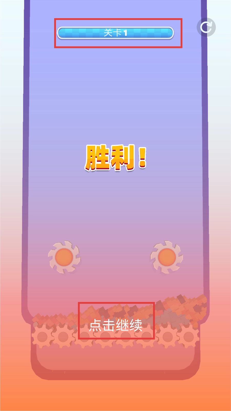 4、当你成功通过关卡1后,点击“继续”按钮,就能进入下一关。在下一关中,你可以继续体验解压切割的乐趣,挑战更多充满趣味的关卡哦。