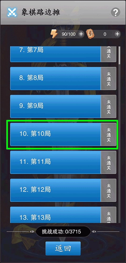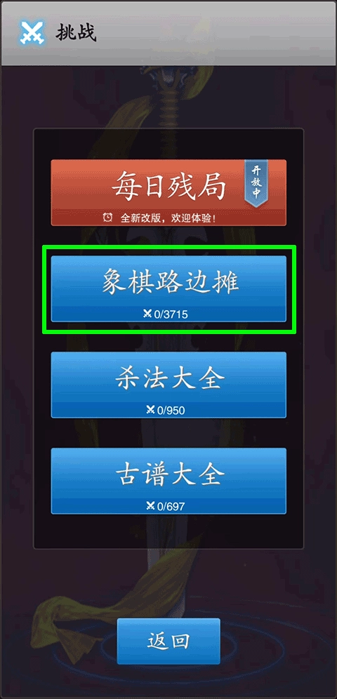 在挑战界面找到并点击“象棋路边摊”按钮,即可进入残局挑战界面。