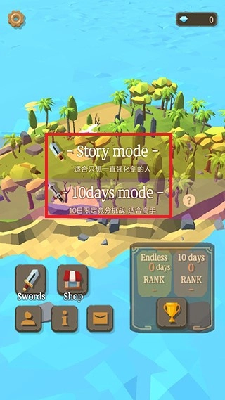 玩家能够选择生存铸剑模式或十日生存模式开启游戏,此次选定的是生产铸剑模式。