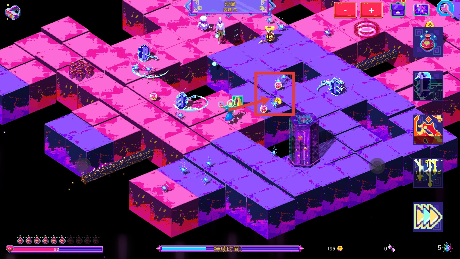 继续在该区域内收集道具,留意【持续时间】参数,不断积累资源,将进度提升到5/20。