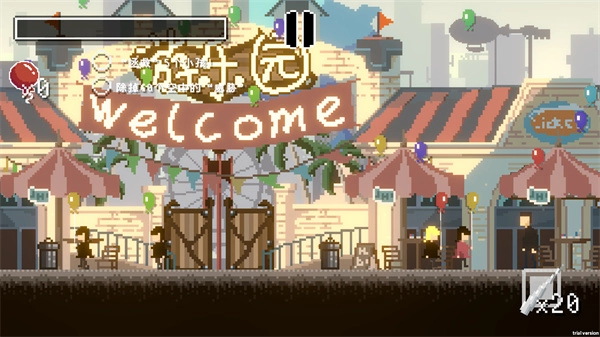 《向气球》是一款复古像素风格的冒险闯关游戏。玩家将化身主角,目标是破坏所有气球以拯救游乐园。游戏全程配备操作提示,轻松上手无压力,剧情内容也十分丰富。不过,若想达成理想结局,还需在关键节点做出正确选择。