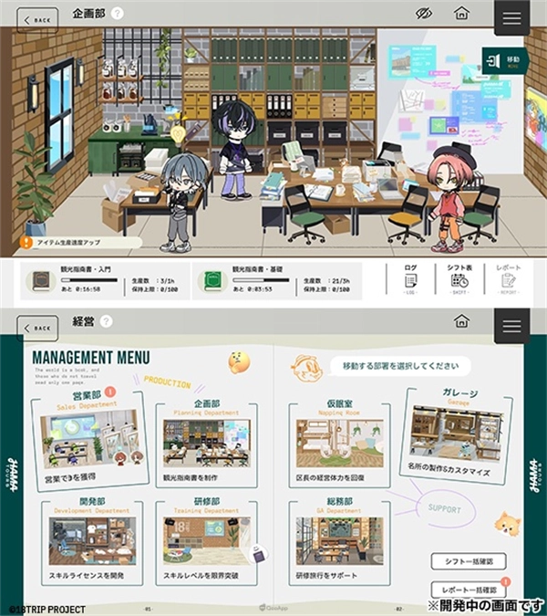 “经营”方面,可以制定轮班表,在经过一段时间后获取观光指南书等育成道具。经营细分为各类部门,每个部门的职责内容有所差异。