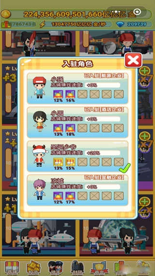 游戏里的通用货币是钻石,玩家要获取钻石,得靠经营自己的各类商业地产和店铺来赚取收益。但通常来说,玩家前期得到的钻石收益很低,就算把新手奖励和每日登录送的钻石都算上,也没法让玩家一下子就快速发展起来。