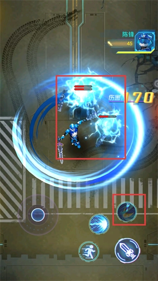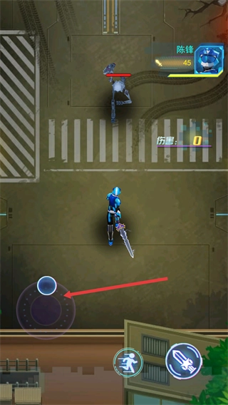 操控【陈锋】这个角色,底部的虚拟按键能够用来移动,现在要准备释放技能来发动攻击。