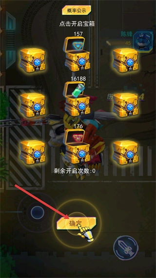 战斗结束后开启宝箱领取奖励,奖励领取完毕点击【确定】按钮,就能完成本次宝箱开启的全部流程。