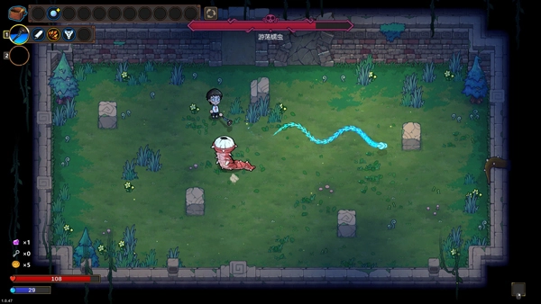 玩家需要操控角色展开冒险,清除地图上的怪物。怪物被击败后会掉落遗物,这些遗物可以装配到角色的法杖上,从而增强角色的伤害输出和各项属性。