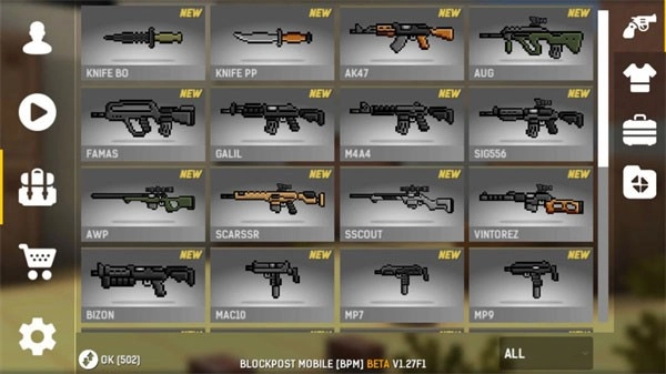 点击右侧的背包商店图标,这里陈列着各式各样的武器,大家可以按照自己的喜好进行挑选。