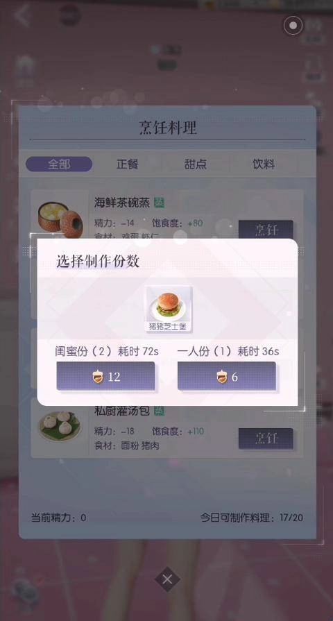 然后点击左上角”饿扁了“,选择要烹饪的料理;