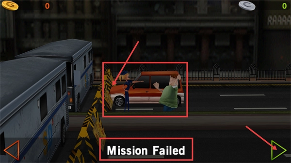 要是看到【Mission-Failed】的提示,就代表任务没完成,你可以点对应的按钮再试一次,记得避开障碍物才能把任务做好。