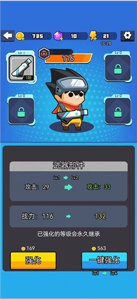 随着关卡逐步解锁,怪物的实力也会不断增强,此时玩家需要对自己的角色进行强化,以此提升战斗力。