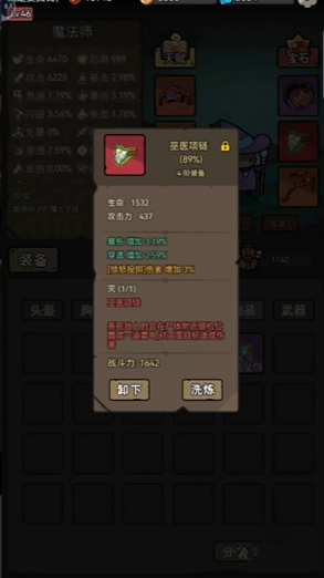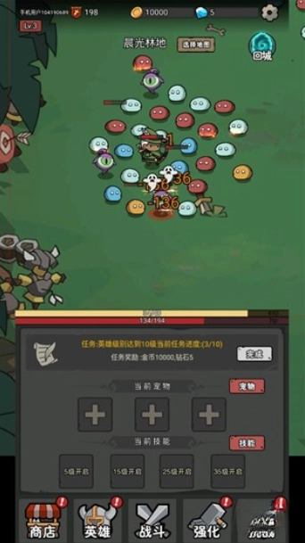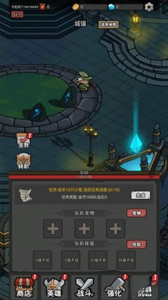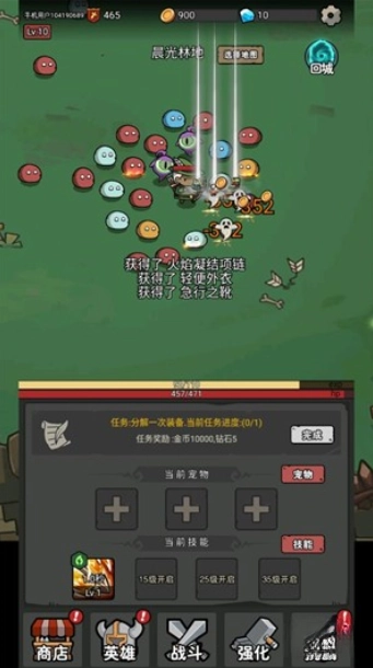 成功击败怪物后,有概率掉落各类装备和道具,玩家需要前往英雄管理界面,进行装备穿戴以及属性强化的操作。