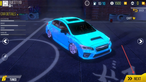 1. 当蓝色赛车调试完毕,我们点击右下角的【NEXT】,进入模式选择界面,就此开启赛车挑战的征程。