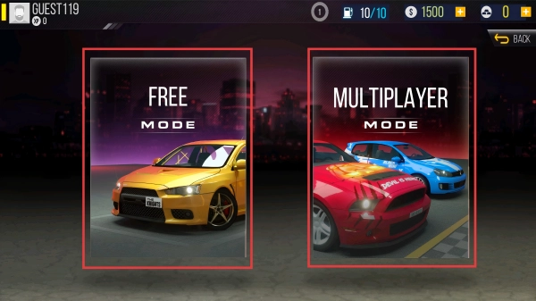 2、在模式页面,可以选择【FREEMODE】自由驰骋,也可以选择【MULTIPLAYERMODE】与他人进行竞速比拼。