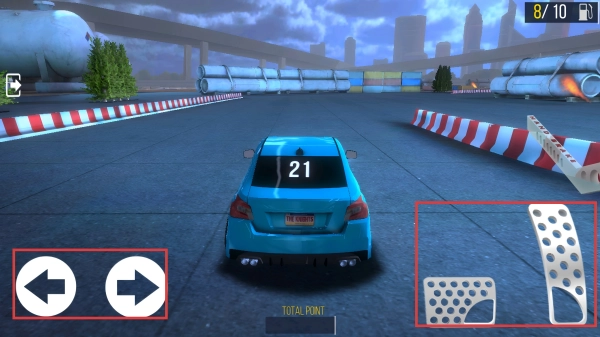 3、踏入赛道后,通过左侧方向键操控方向,利用右侧踏板控制加速与刹车,巧妙灵活地穿梭其间,躲避各类障碍,进而积累积分。