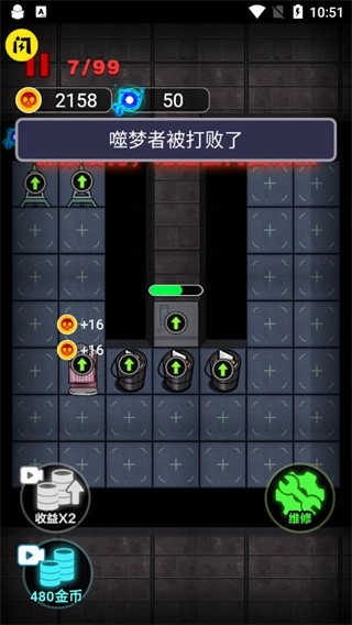 3、噬梦者开始攻击门后,玩家需点击“维修”按钮,修复门的耐久值。