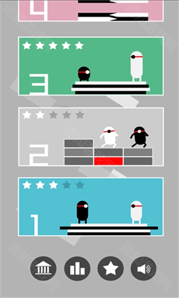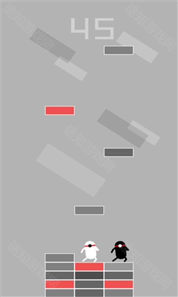 第二关要避免被砖块砸中,点击屏幕就能操控角色移动。角色每次移动遵循“黑右移、黑白左移、白右移”的规律,这一关对手速的要求很高。
