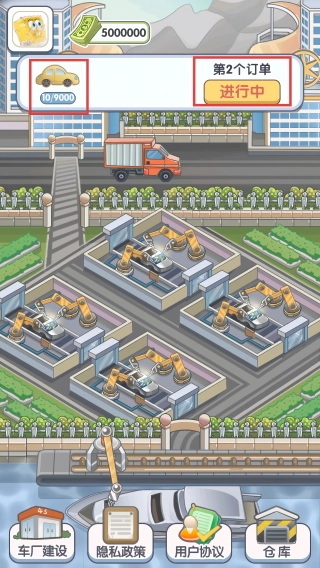 1. 进入游戏后,留意订单进度。此刻,第2个订单正在推进,我们要依照要求生产相应数量的车辆,以推动订单顺利完成。