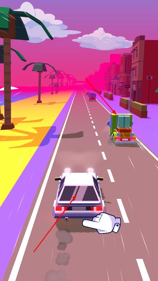 驾驶赛车在道路上行驶,根据手势指示操控方向,超越或避让前方车辆,沿着路线前进,应对路况完成关卡进程。