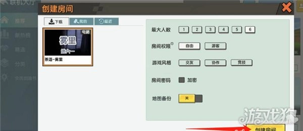 3、点击后,完成房间信息设置,接着再次点击右下角的“创建房间”,具体位置如图所示。