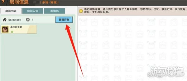 5、如图所示,在房间信息界面,玩家能够看到邀请好友的选项。