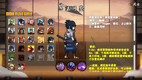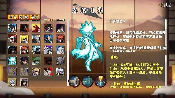 游戏内收录了众多火影角色,还为玩家提供了这些人物的图鉴。其中,秽土转生的千手柱间便是角色之一。