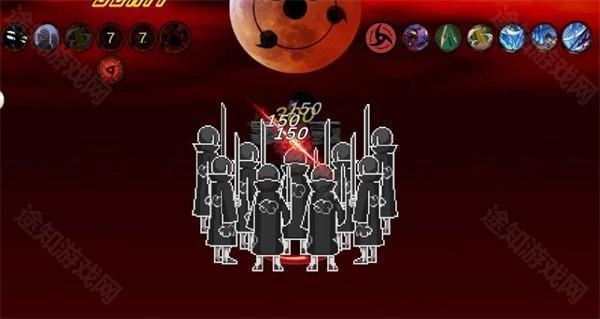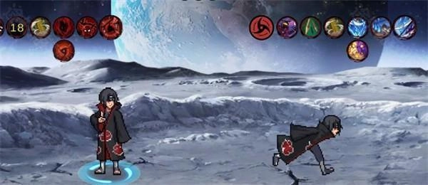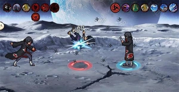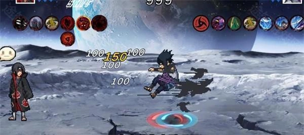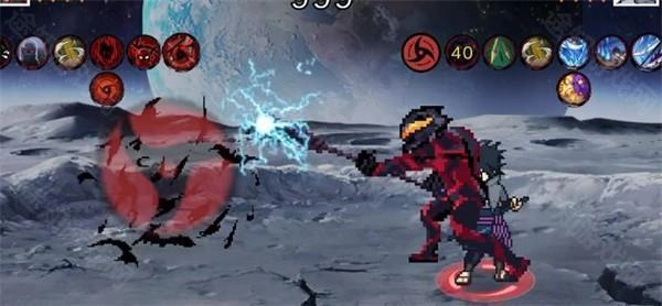 6、奥义月读,结印将敌人拉进幻术空间,生成大量分身刀刺攻击,最后月亮砸下毁灭一切。