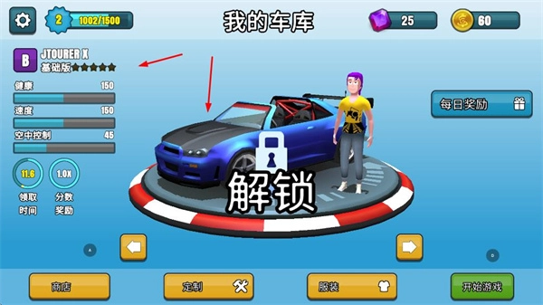 可以查看自己所拥有的赛车,知晓赛车的健康状况、速度性能、空中控制能力等各项属性;当满足特定条件时,就能解锁全新的赛车,同时还能对赛车开展定制化设置、更换外观涂装等操作。