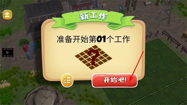 开始工作,点击“开始吧”按钮后,启动了第一个工作任务,进入了农场作业场景。