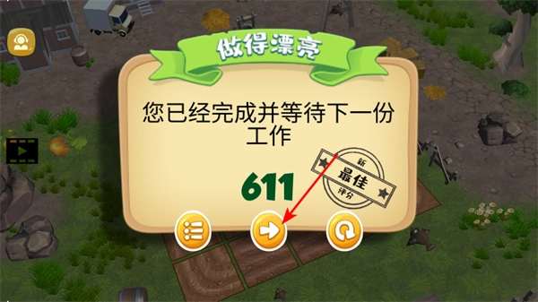 继续推进任务,完成当前工作后,点击箭头按钮进入下一份工作任务,以持续推动游戏进程。