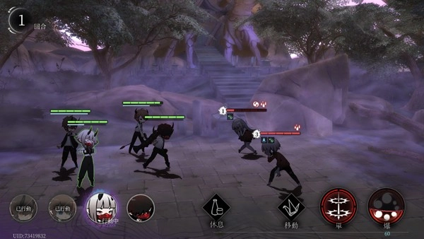 战斗采用2D回合制与“鬼神武装”系统相结合的模式,玩家能够依据不同属性的技能进行布阵,从而构建出独具个性的战斗策略。