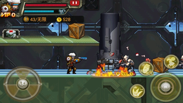 整体而言,这款游戏的难度处于适中水平,虽说称不上难,但确实存在一定挑战。其操作玩法较为常规,左侧的摇杆用于控制角色行动,右侧则负责跳跃、武器更换以及手雷使用等功能,布局清晰明了。玩家需要思考如何灵活运用各类武器,巧妙地躲避敌人的攻击,从而尽情体验这款动作射击游戏带来的极致快感。
