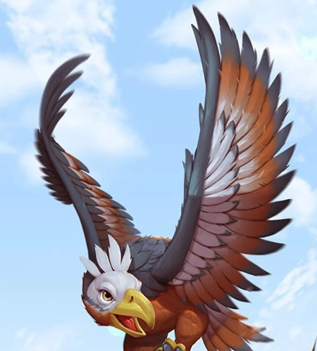 阿根廷巨鹰堪称人类历史上出现过的最大鸟类,其站立时身高超2米,双翼展开长度介于5.8米到7米之间。体重约70公斤的它,能够捕获重达15公斤的猎物。在游戏里,阿根廷巨鹰腾空而起,尽显霸气,使人不禁心生敬畏。在游戏设定中,阿根廷巨鹰属于传说品质,在飞龙类别里生命星级最为强大,是防御类玩法中不可或缺的空战龙。