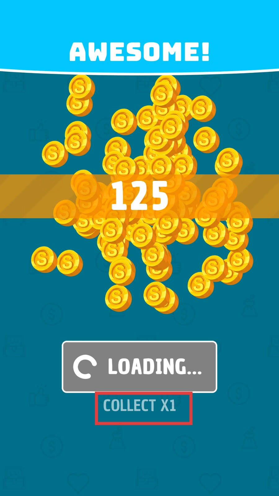 4、成功通关后,点击【COLLECT】即可收取125枚金币。不断积累金币,就能解锁全新内容与道具,快来继续迎接挑战吧!