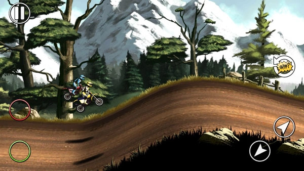 游戏的操作方式十分直观,屏幕左侧有两个按键:红色的是刹车,绿色的为油门。屏幕右侧设有两个箭头按键,其作用是在摩托车腾空时调节平衡。比较贴心的是,这些按键支持玩家自行调整。在手感方面表现平平,但很容易上手,不过对手实力很强。