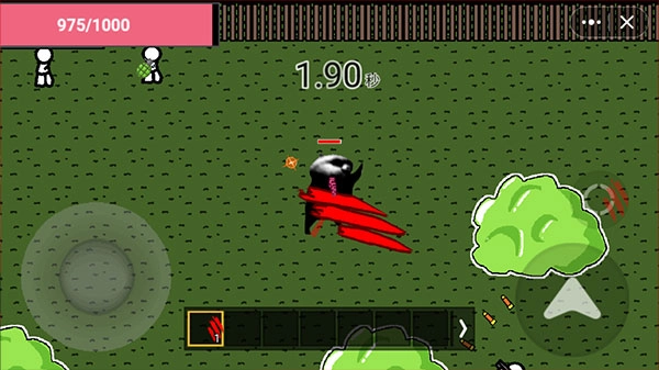 2、左下角的按钮负责控制角色移动,右侧的按钮用于跳跃,左上角显示的是自身血量。在此场景中,你要持续移动并攻击敌人,尽可能延长存活时间。达成优秀成就后,成绩会自动录入排行榜,参与排名哦!