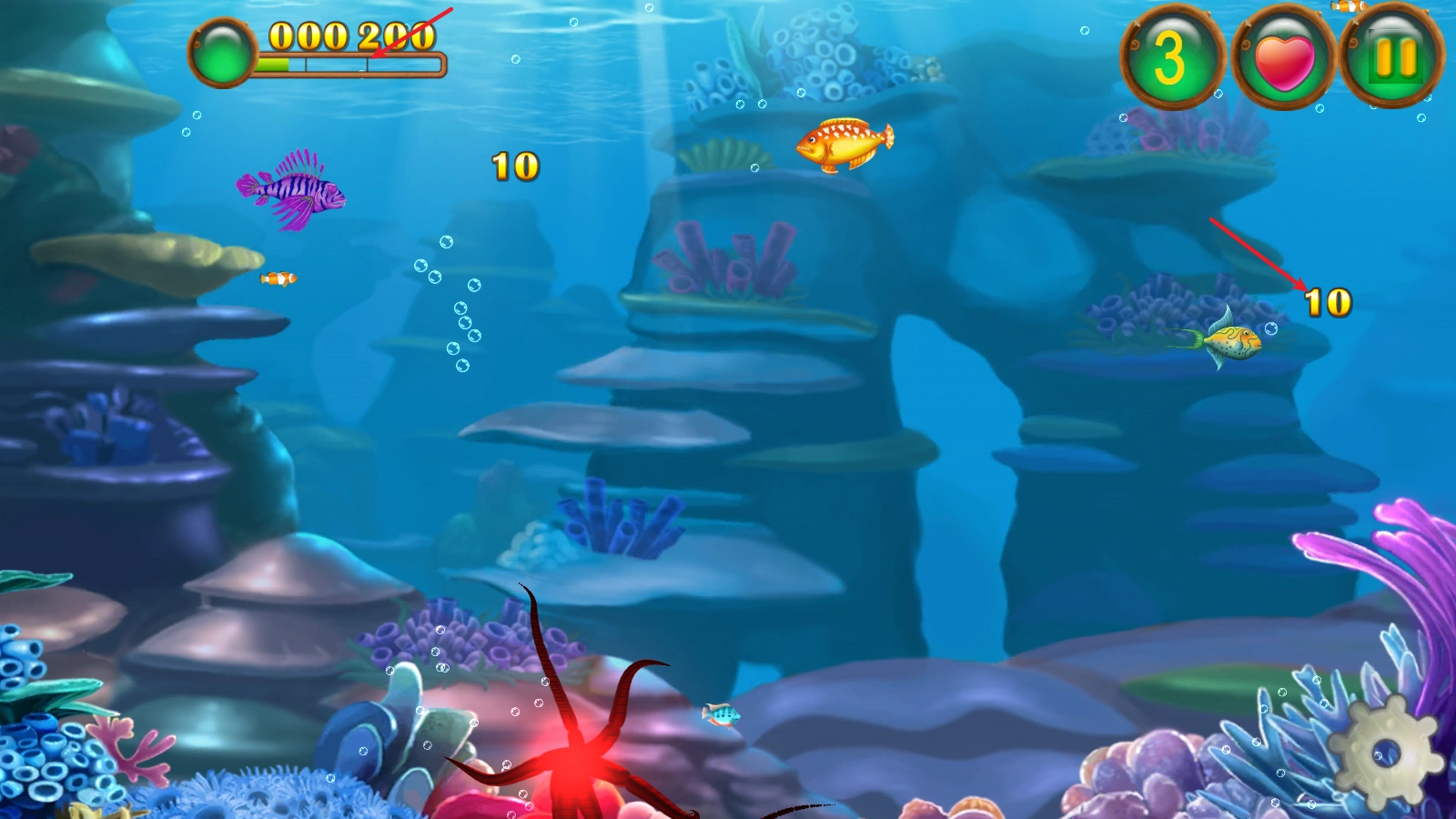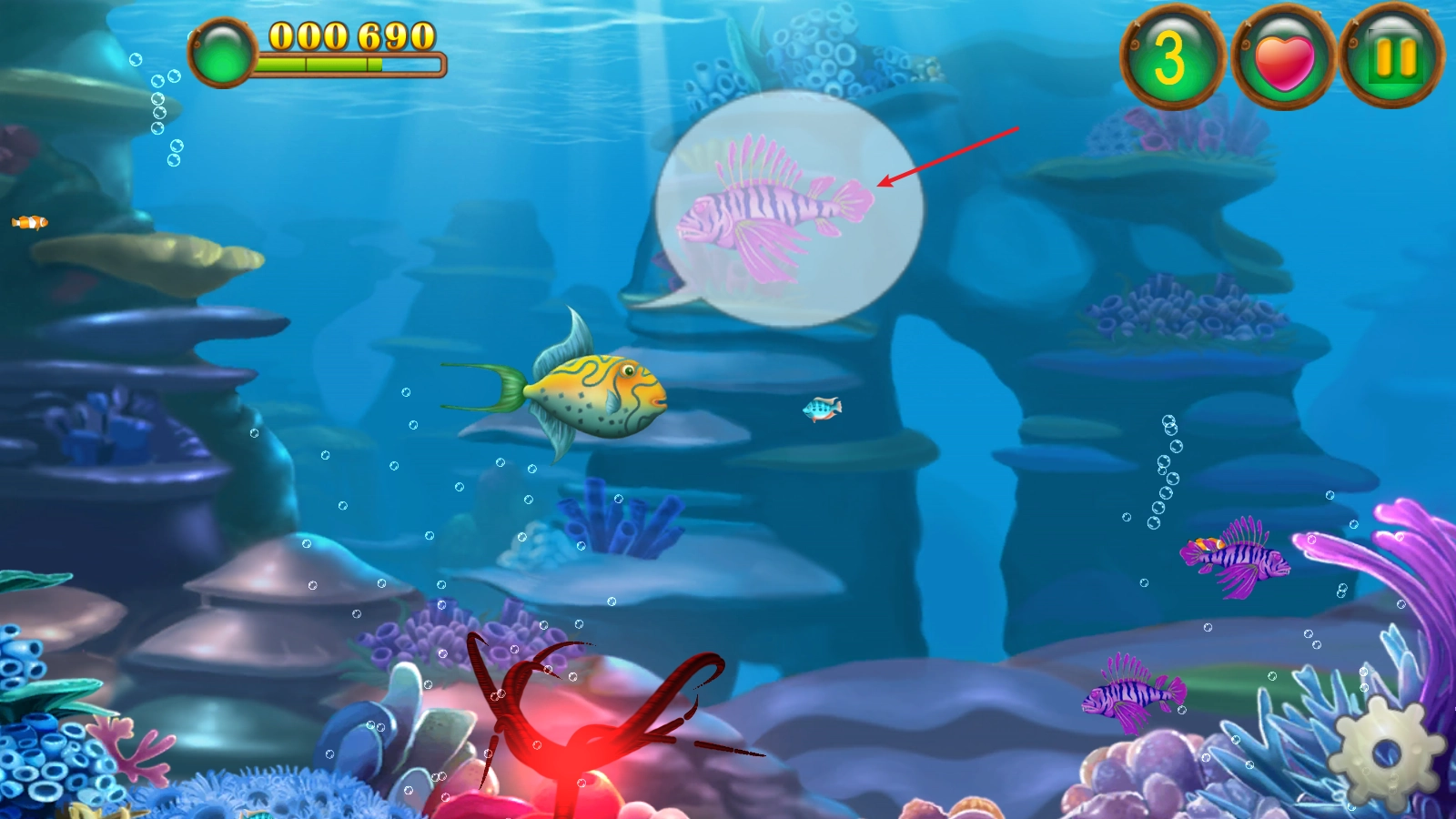 当体型增长到一定程度后,就能去捕食体型更大的鱼类,从而获取更多的积分。