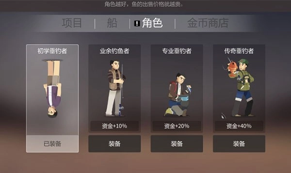 丰富的鱼竿和鱼饵等装备道具可以选择。