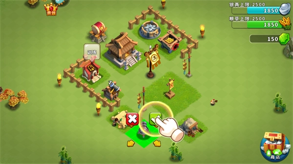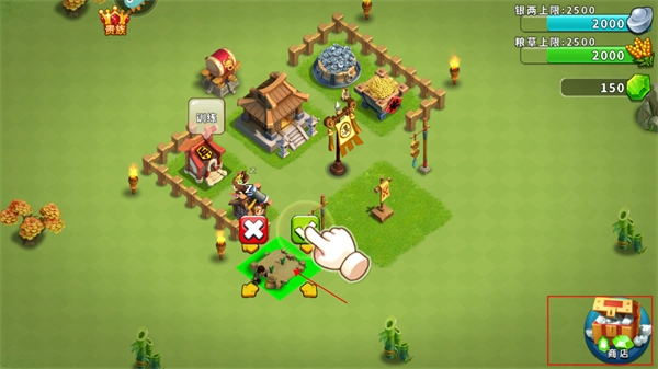 2、建设第一步:俗话说“兵马未动,粮草先行”,我们首先得拥有自己的农田和银矿!操作方式为点击商店 - 资源,从中选择农田或银矿。
