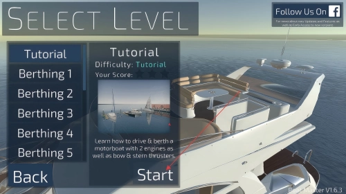 2. 选择【Tutorial】关卡,点击【Start】,学习游艇驾驶的基础操作。