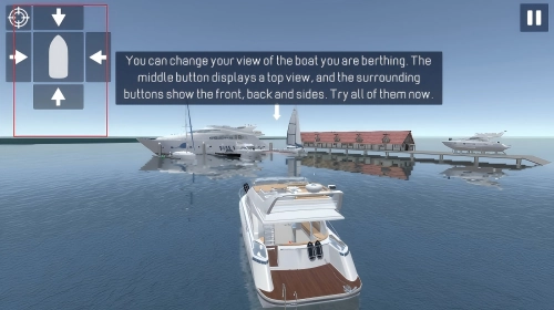 3、通过左侧按钮来切换视角,以熟悉游艇外观,依照指引掌握视角功能。