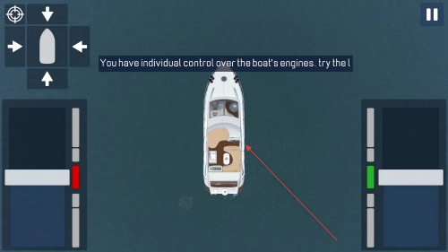 4、对两侧引擎控件进行操作,以此控制游艇移动,顺利完成驾驶任务,进而提升驾驶技巧。