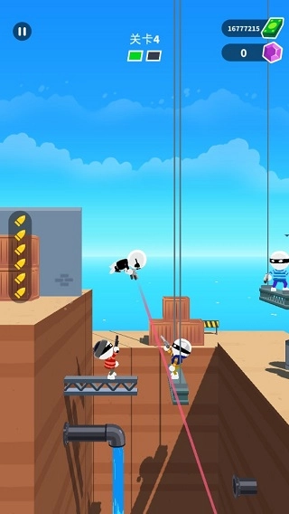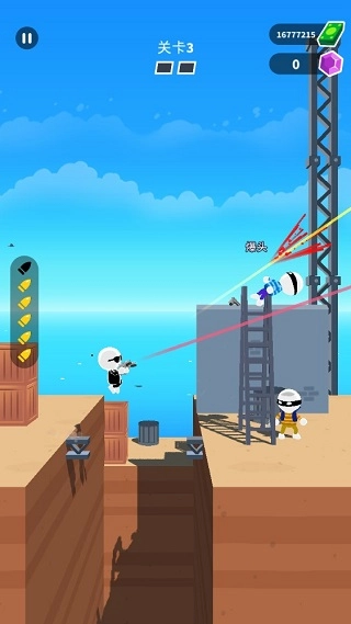 游戏里玩家操控的是画风卡通的3D小人角色。玩家要做的事很简单,只需通过跳跃、移动、射击等一系列操作,将关卡中的敌人击杀即可。