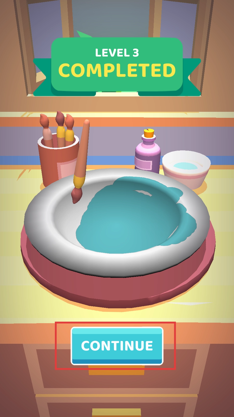 3、当你完成这一关的涂色操作后,点击【CONTINUE】,尽情释放你的艺术创作力,去打造全新的艺术盘子吧。