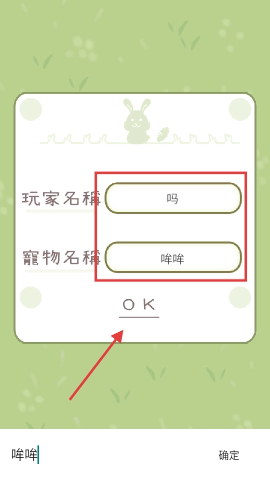 2. 填入玩家名称与宠物名称后,点击“OK”进行确认。