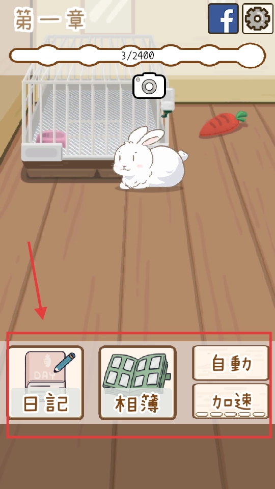 3、通过“日记”查看养兔剧情,利用“相簿”记录互动情况,借助“自动/加速”来调整玩法节奏。