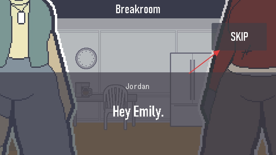 2. 当碰到与Jordan的对话时,点击“SKIP”进行跳过,以此快速推动剧情发展。