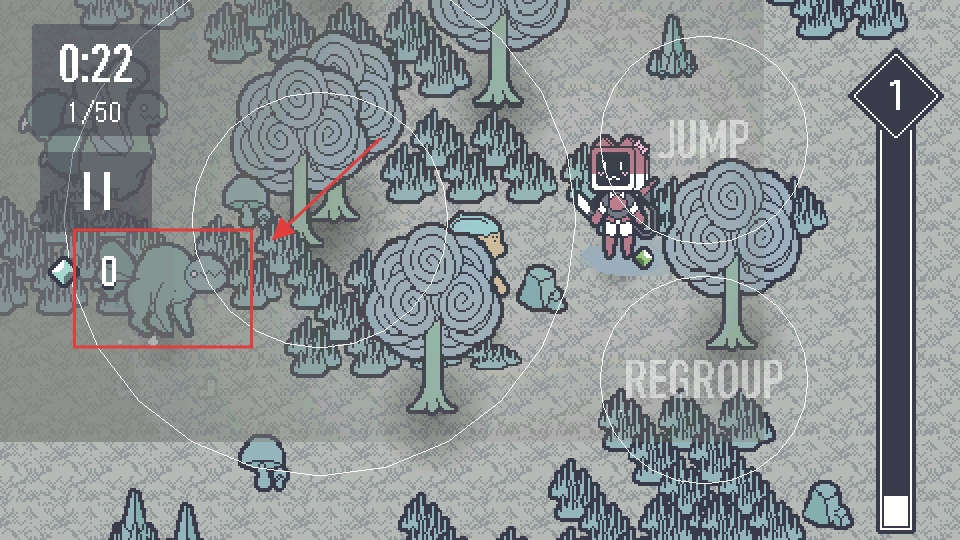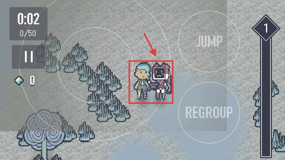 3、控制红框中的角色(蓝发并带有机械伙伴),在森林场景里进行移动,做好完成收集任务的准备。