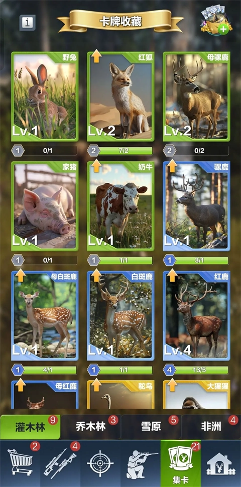 特别打造集卡系统,专为猎友们悉心收藏动物卡牌。