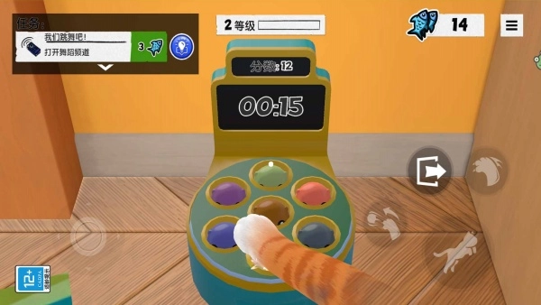 1、触控操作:通过轻点屏幕,可控制猫咪进行跳跃以及互动,还能完成拼图或组合道具。