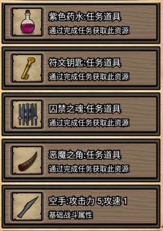 6、紫色药水、符文钥匙、囚禁之魂、恶魔之角、空手;